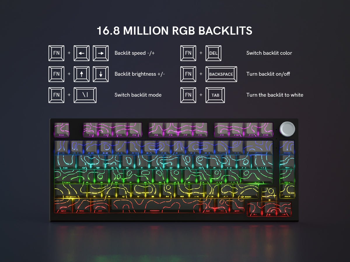 Take your desk to the next level with this versatile 75% keyboard built for gamers and multitaskers. A gasket structure with multiple sound-dampening layers reduces keystroke noise while creating a smooth. creamy keyboard feel. Its vibrant 16.8M RGB with 12 music-synced effects makes this wireless mechanical keyboard both powerful and cute. Use it as a Bluetooth keyboard. a 2.4G wireless keyboard. or connect with Type-C for stable performance. Hot-swappable 3/5-pin switch compatibility allows for endless mechanical keyboard customizations. The original driver enables macro recording. key mapping. and immersive lighting personalization. Comfortable support angle plus two-position footrest keep you typing longer with less strain. A gaming keyboard that offers style. flexibility. and customization in one compact package.