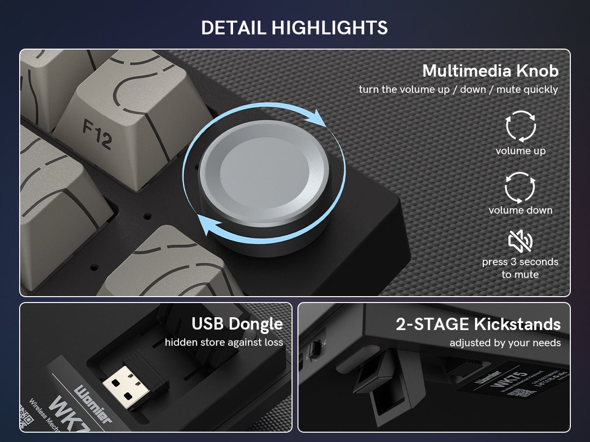 Womier WK75 75% Hot-Swappable Wireless Keyboard with Multimedia Knob